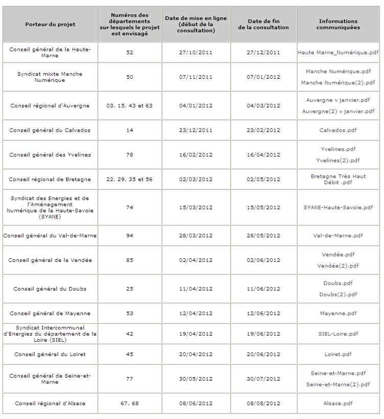 Vous trouverez le lien ci-après de l'Arcep, où sont déposées tous les projets des Collectivités